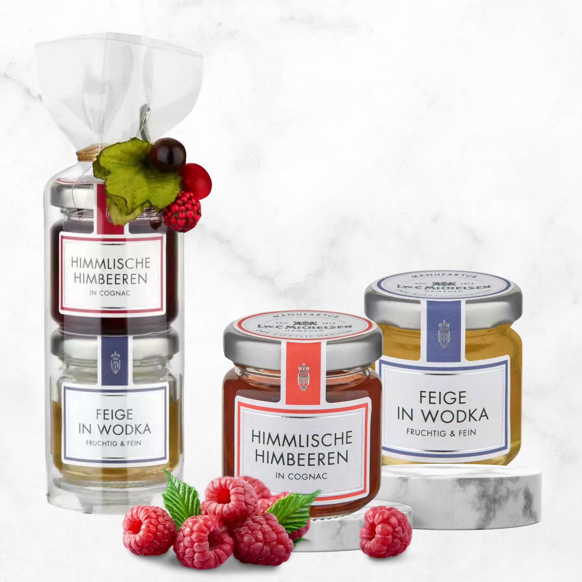 - Enthält zwei Gläser mit Himbeer & Cognac und Feige & Wodka, perfekt für Feinschmecker