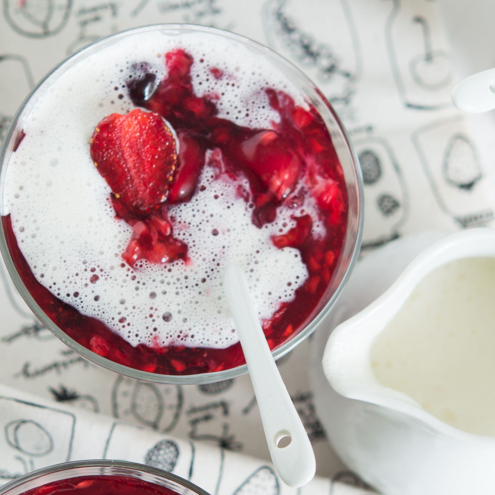 - Erleben Sie den unvergleichlichen Geschmack von Kirschen, roten Johannisbeeren, Erdbeeren, schwarzen Johannisbeeren und Himbeeren in unserer roten Grütze.