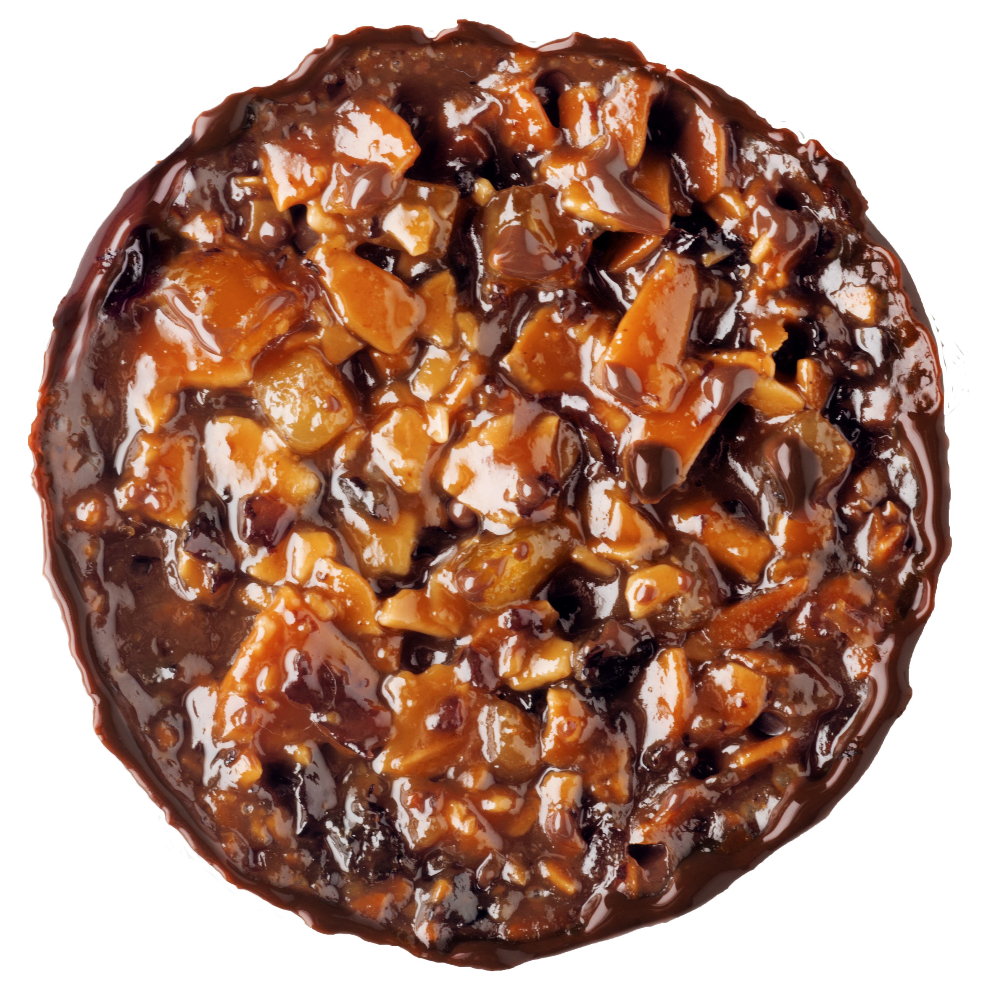 24 % Zartbitterschokolade (Kakaomasse, Zucker, Kakaobutter, Emulgator: SOJAecithin), Zucker, 15,4 % kandierte Trockenorangenwürfel (Orangenschalen, Saccharose, Glukosesirup, Zitronensäure), 9,3% gespaltene MANDELN, frisch gesalzene BUTTER, 8 % getrocknete Rosinen, frische SAHNE, 6,2% Honig. Kann Spuren von Nüssen enthalten. |