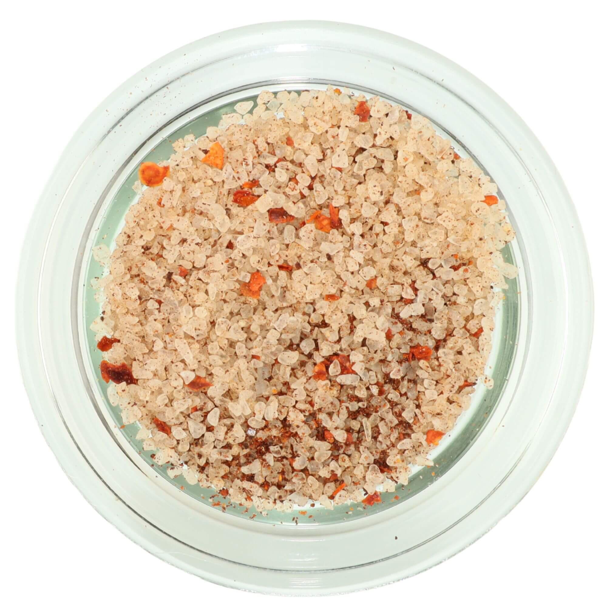 | Zutaten | Meersalz, 4% Chili Chipotle, 1,5% Chili Flocken, Paprika Edelsüß. |