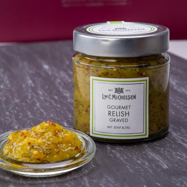 Unser Gourmet Graved-Relish ist ein wahres Meisterwerk der Feinkostkunst, das nach einer traditionellen schwedischen Rezeptur zubereitet wird.
