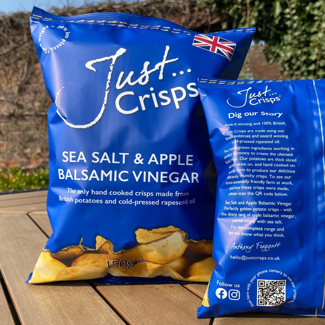 - Just Crisps Apple Vinegar & Sea Salt Kartoffelchips bieten einen einzigartigen Geschmack aus feinem Meersalz und fruchtigem Apfel-Balsamico Essig.