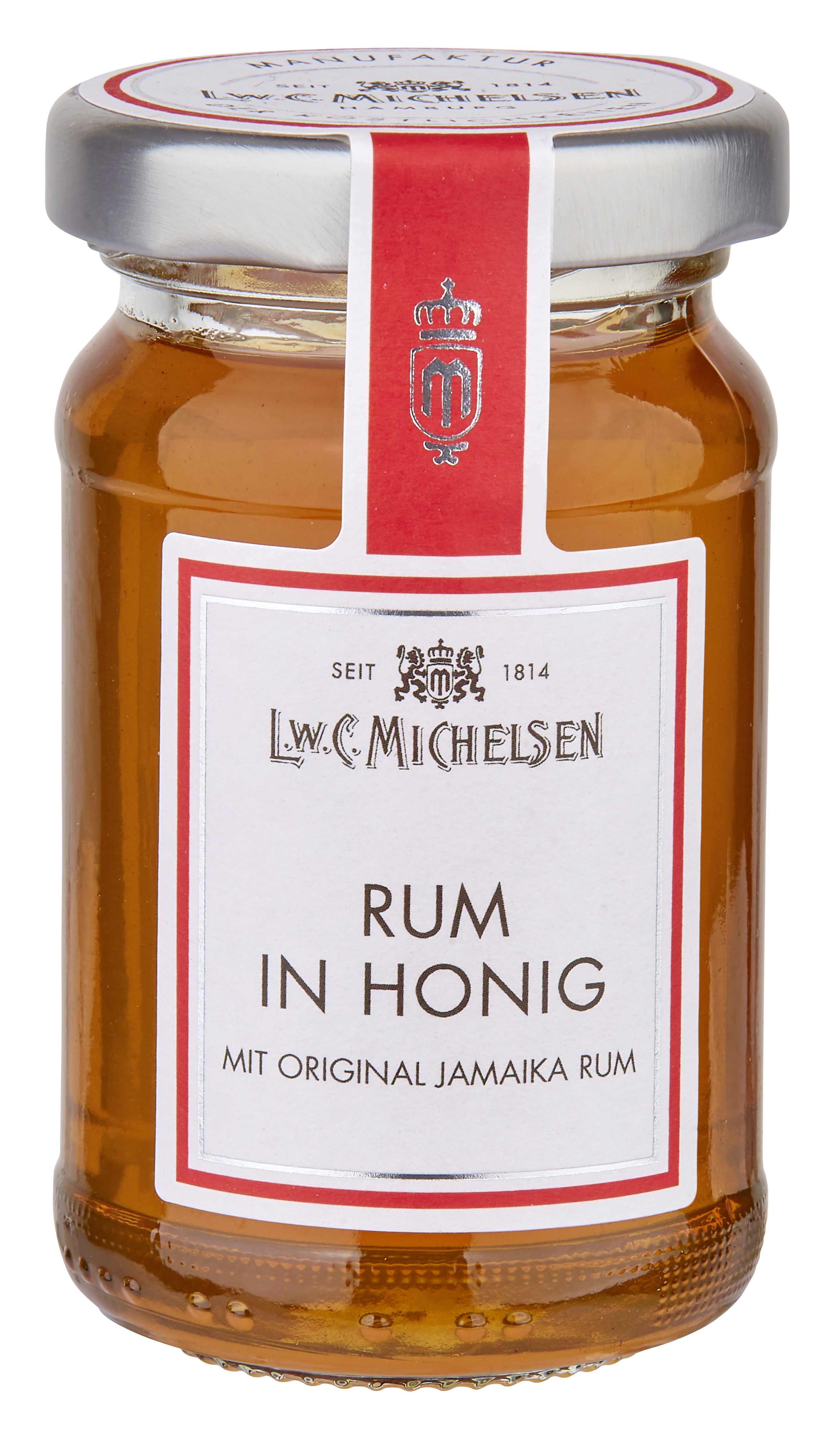 - Feiner Blütenhonig mit echtem Jamaika-Rum, der eine exquisite Note verleiht.