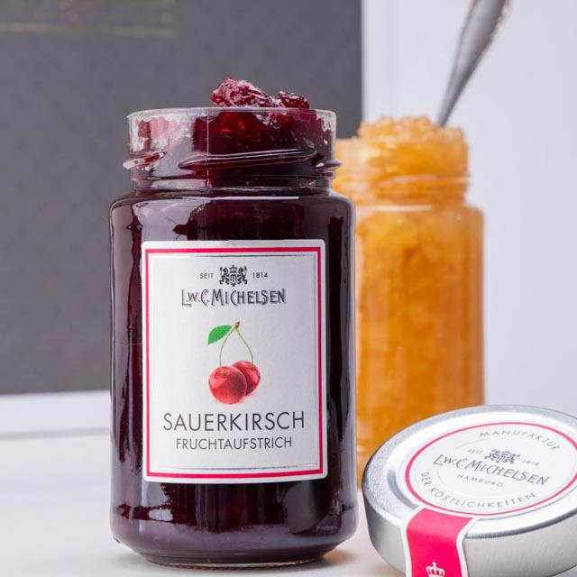 Eine kleine Anekdote aus unserer Geschichte: Schon vor über 200 Jahren erfreuten sich die Hamburger an unseren feinen Konfitüren, die damals sogar den Weg an den kaiserlichen Hof fanden. Heute sind wir stolz darauf, diese Tradition fortzuführen und Ihnen ein Stück hanseatischer Genusskultur zu bieten. Tauchen Sie ein in die Welt unserer Feinkost und lassen Sie sich von der Qualität und dem Geschmack unseres Sauerkirsch Fruchtaufstrichs verzaubern.