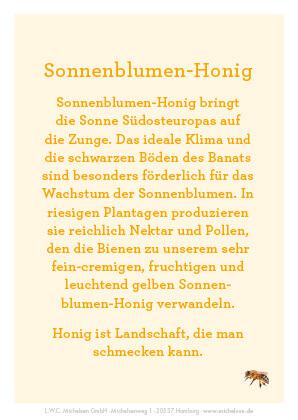| Bezeichnung des Lebensmittels | Sonnenblumen-Honig |